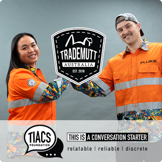 TradeMutt is a social impact workwear company that create funky eye-catching work wear designed to start conversations about mental health among the blue collar community, making the invisible impossible to ignore. They donate 50% of profits to TIACS, a free text and call mental health support service for blue collar workers across Australia. We’ve teamed up with TradeMutt to create an exclusive design to help start important conversations in a trade and industry that needs them.